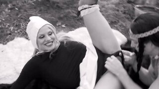 flagAttractive redhead MILF pleasures young brunette outdoors